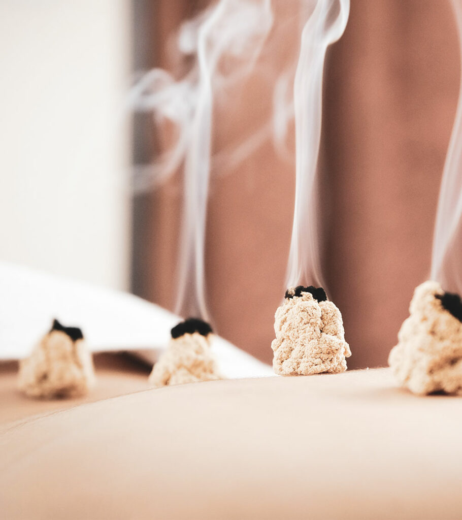 Bei der Moxa-Therapie werden ausgewählte Meridianpunkte durch das Abbrennen von Moxakraut erwärmt. Durch die Erwärmung des Hautareals werden Stagnationen und Blockaden im Energiefluss ausgeglichen.
